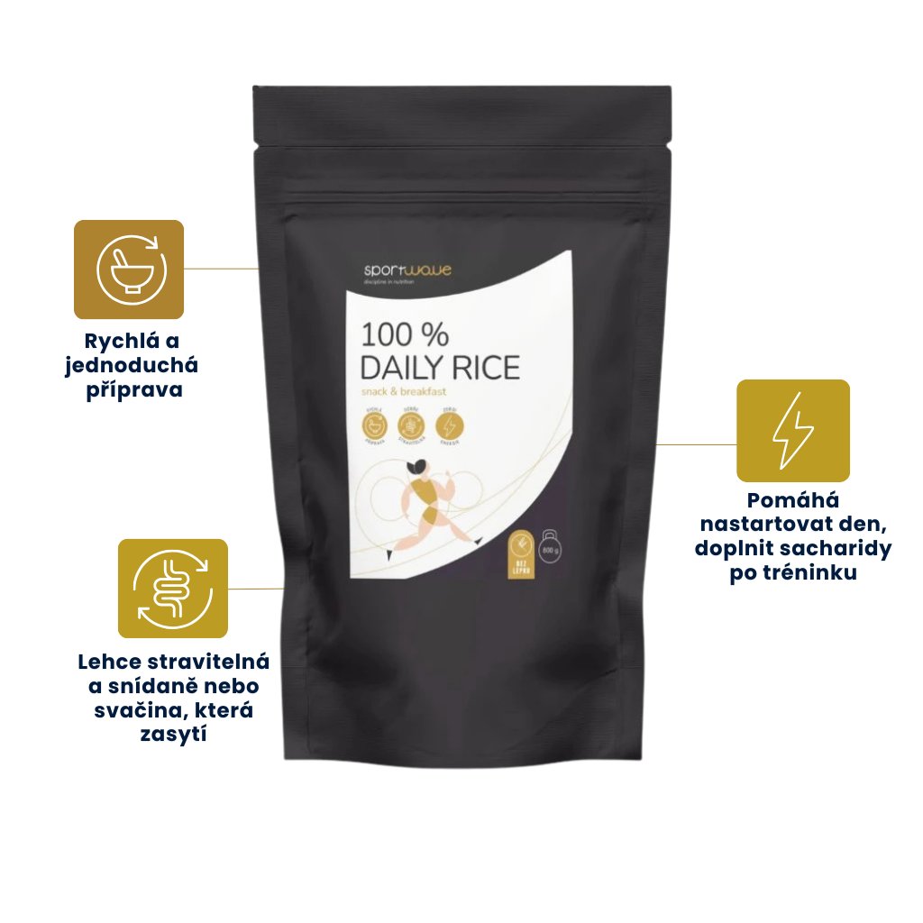 Když potřebujete rychlé, lehce stravitelné jídlo, často skončíte u snacků, které zasytí jen na chvíli. To se projeví kolísáním energie, chutěmi a tím, že další jídlo řešíte zbytečně brzy. 100 % DAILY RICE je jednoduché řešení: instantní rýžová mouka s vysokým podílem komplexních sacharidů, která se připraví během pár minut a dá tělu stabilnější energii, ráno, v práci i kolem tréninku.